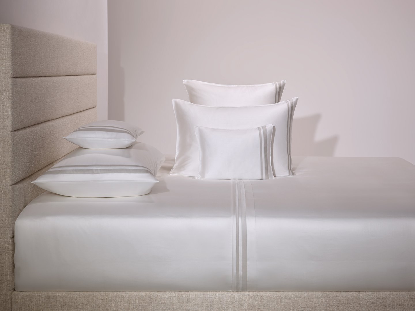 Unser Tencel™ Modal-Set Flûte Enchantée hüllt Ihre Nächte in Weichheit und Leichtigkeit. Das natürlich geschmeidige, atmungsaktive Material wird durch schmale Streifen aus Tencel™ Modal oder Satin mit 300 Fäden betont und verleiht dem Ganzen eine zusätzliche elegante Note.