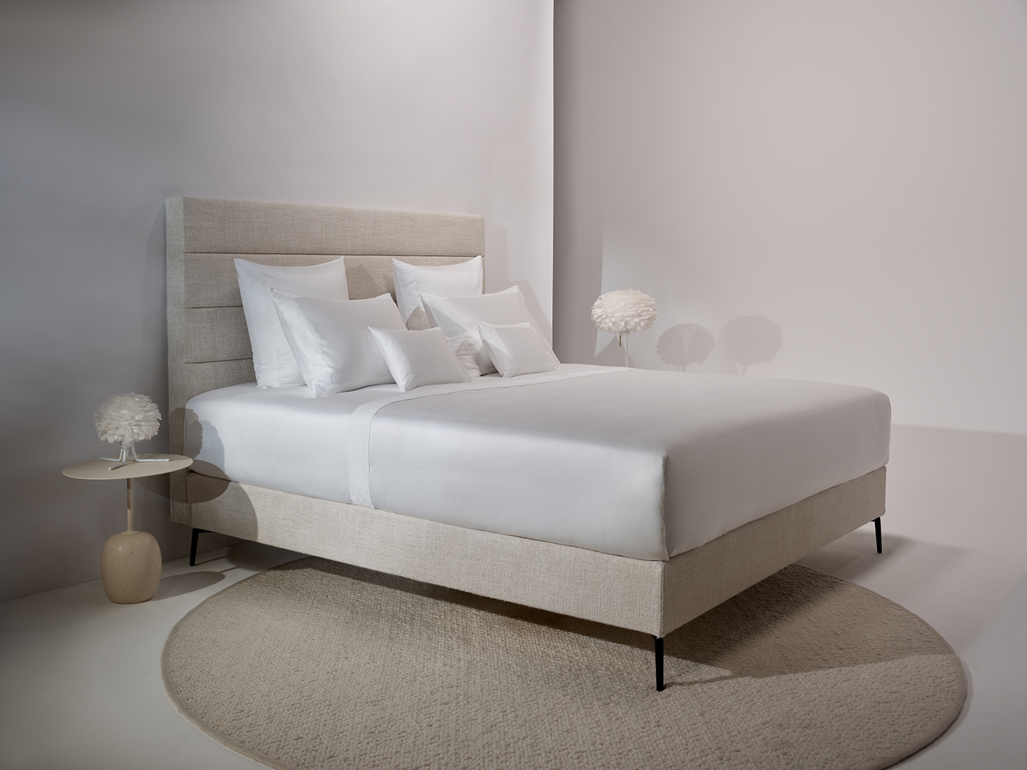 Our 600-thread-count cotton sateen Figaro set features a 300-thread-count Jacquard sateen imitation trim in a matching shade for a subtle, elegant finish.