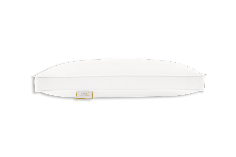 Natural, beautiful, soft, luxurious pillow with an external flat section designed to allow the lining to provide volume and support to the edge of the pillow. It is specially designed for those who prefer to sleep on their side. Lining in highest quality 90% new white down and European goose feather. 100% Mako cotton bag with medicott® treatment. Gold colour edging finish.